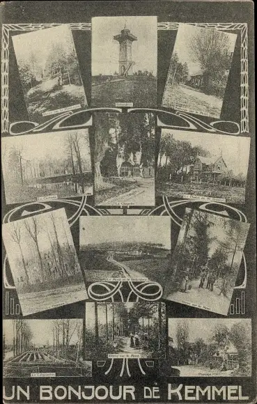 Ak Kemmel Heuvelland Westflandern, Turm, Umgebung, Straßenansichten, Gewässer, Häuser