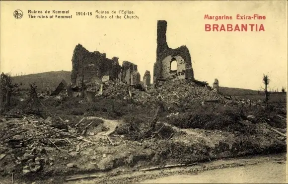 Ak Kemmel Westflandern, Ruines de l'Eglise