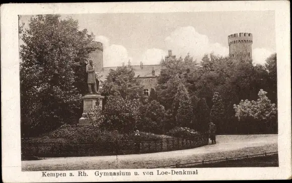 Ak Kempen am Niederrhein, Gymnasium, von Loe Denkmal