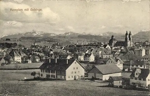 Ak Kempten im Allgäu Schwaben, Gesamtansicht mit Gebirge