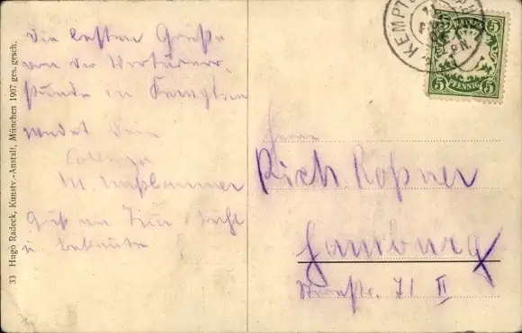 Zustand siehe Scan, gelaufen, 1907 - ca 14 cm X 9 cm