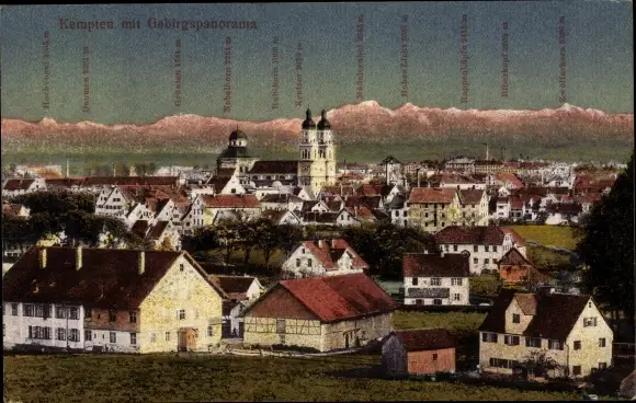 Ak Kempten im Allgäu Schwaben, Totalansicht der Ortschaft, Gebirge