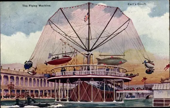 Ak Kensington London England, Earl's Court, The Flying Machine, Karussell