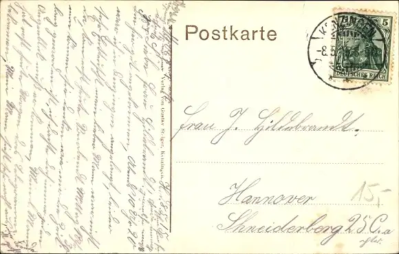 Zustand, siehe Scan, gelaufen, 1915 - ca 14 cm X 9 cm