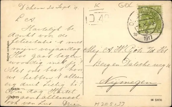 Zustand, siehe Scan, gelaufen, 1917 - ca 14 cm X 9 cm