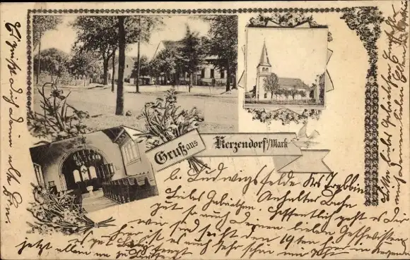 Ak Kerzendorf Ludwigsfelde in der Mark, Kirche, Innenansicht, Straßenpartie