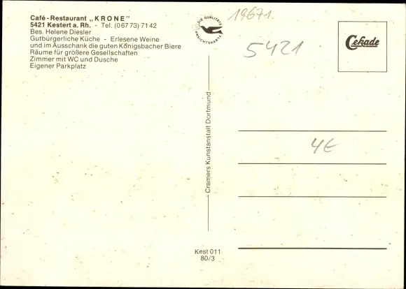 Ak Kestert am Rhein, Pension Krone