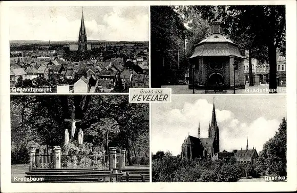 Ak Kevelaer, Kreuzbaum, Basilika, Gnadenkapelle, Ort