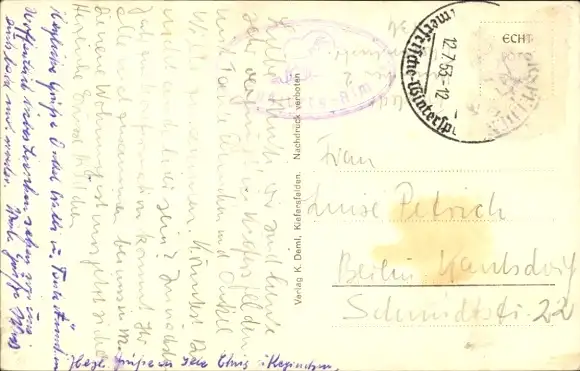 Zustand, siehe Scan, gelaufen, 1953 - ca 14 cm X 9 cm