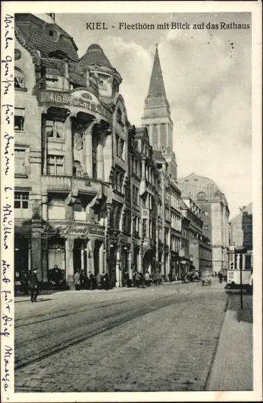 Ak Kiel, Fleethörn mit Blick auf das Rathaus