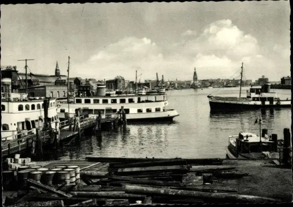 Ansichtskarte, Postkarte, Hafen, Schiffe, Boote, Dampfer, Boot