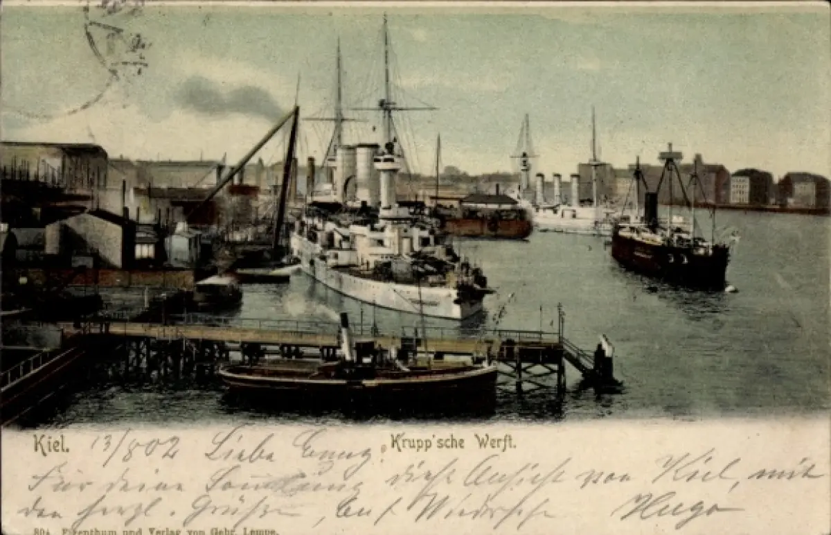 Ak Kiel, Hafenansicht, Schiffe, Krupp'sche Werft, Kiel