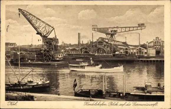 Ak Kiel, Handelshafen, Blick auf die Germaniawerft
