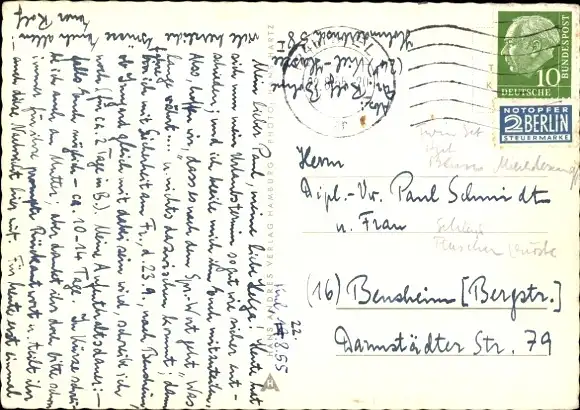 Zustand, siehe Scan, gelaufen, 1955 - ca 15 cm X 11 cm