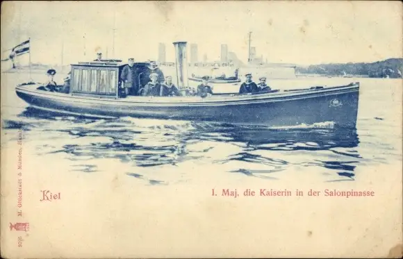 Ak Kiel, I. Maj. die Kaiserin in der Salonpinasse