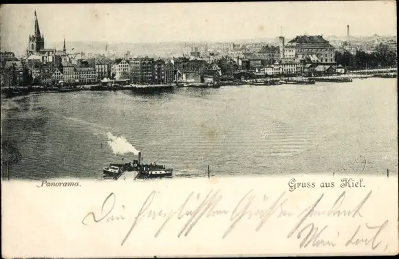 Ak Kiel, Panorama, Dampfschiff