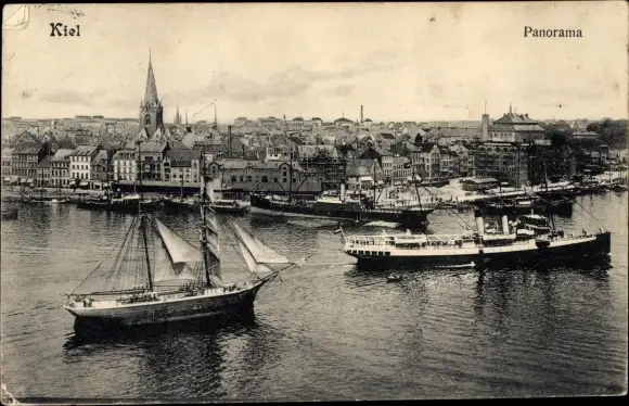 Ak Kiel, Panorama, Hafen, Dampfschiff, Segelschiff