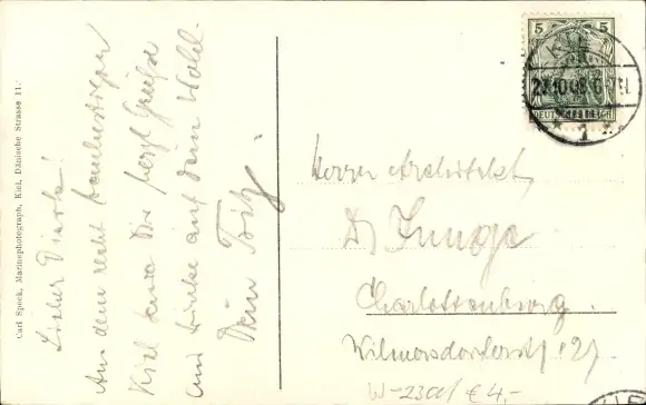 Zustand, siehe Scan, gelaufen, 1908 - ca 14 cm X 9 cm