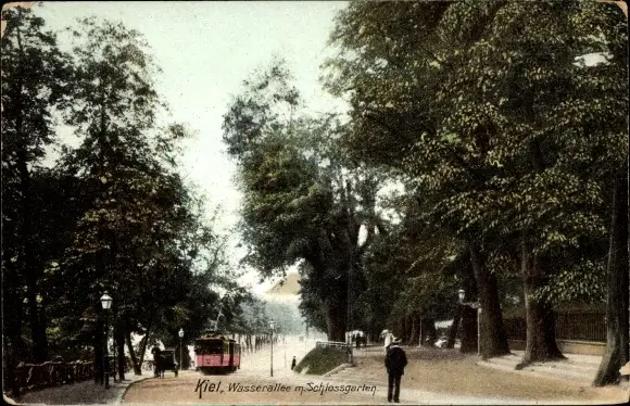 Ak Kiel, Wasserallee, Schlossgarten, Straßenbahn