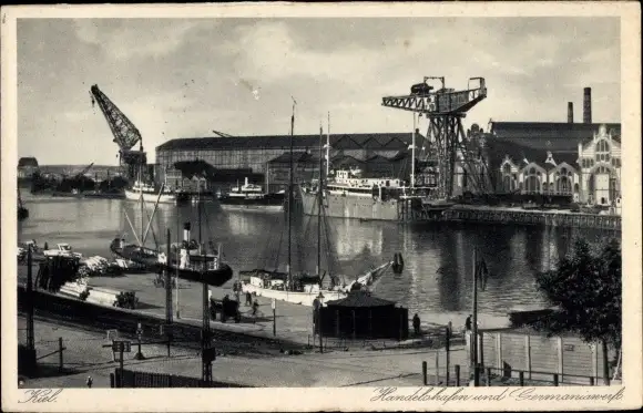 Ak Kiel in Schleswig Holstein, Handelshafen und Germaniawerft