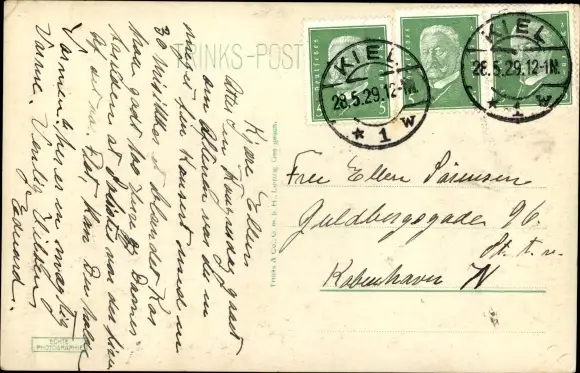 gelaufen 1929, leichter Eckknick rechts oben, sonst guter Zustand