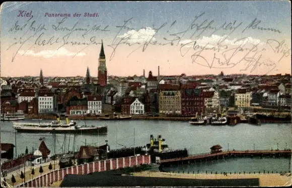 Ak Kiel in Schleswig Holstein, Stadtpanorama, Dampfer
