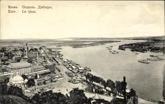 Ak Kiev Kiew Киев Ukraine, Stadtansicht mit Hafen