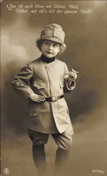 Ak Kind in Uniform mit Zigarette, Bin ich auch bloss ein kleiner Held
