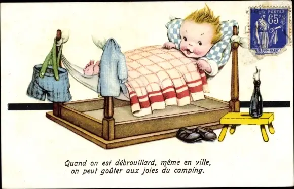 Ak Kind in der Hängematte, Kurze Hose, Decke, Schuhe