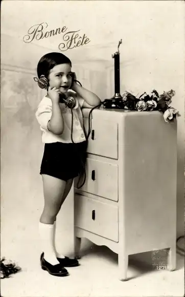 Ak Kind in kurzen Hosen am Telefon