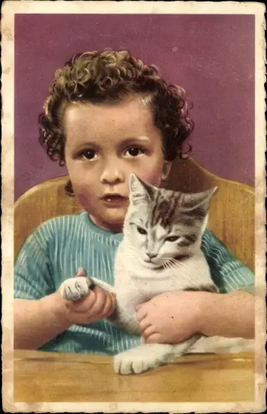 Ak Kind mit Katze, Kind-Portrait, Tier-Portrait