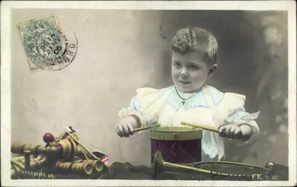 Ansichtskarte, Postkarte, Schlaginstrument, Schlaginstrumente, Musikinstrumente, Musikinstrumente, Trommel