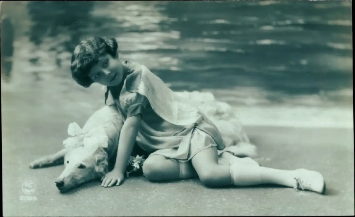 Ak Kind mit Windhund, Portrait