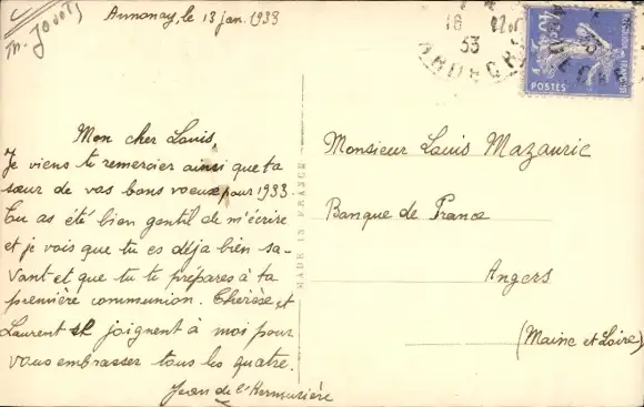 Zustand, siehe Scan, gelaufen, 1933 - ca 14 cm X 9 cm