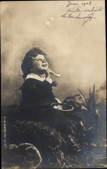 Ak Kind pustet Seifenblasen, Pfeife