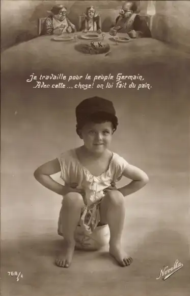Ak Kind sitzt auf dem Nachttopf, Familie am Tisch