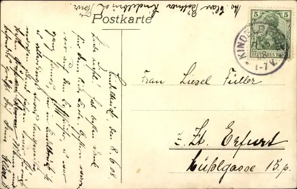 Zustand, siehe Scan, gelaufen, 1908 - ca 14 cm X 9 cm