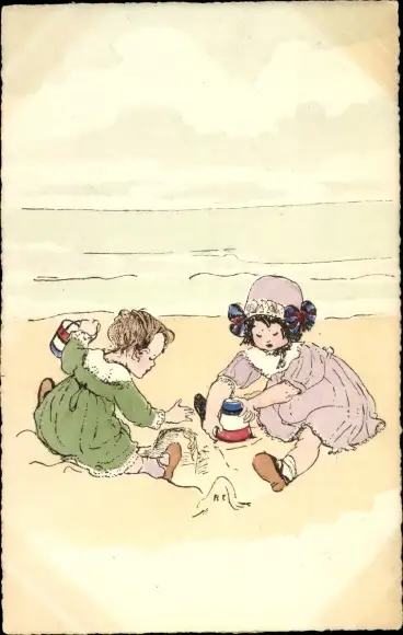 Ak Kinder am Strand, Sandburg, Eimer, Strandleben