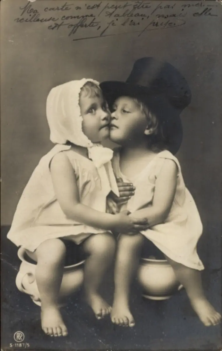 Ak Kinder auf Nachttöpfen, Kuss
