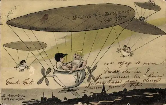Ak Kinder auf Nachttöpfen, Zeppelinfahrt