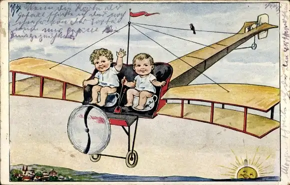Ak Kinder auf Nachttöpfen in einem Flugzeug