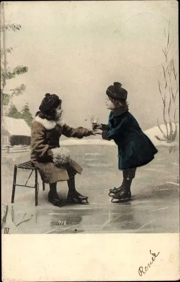 Ak Kinder auf Schlittschuhen, Eisläufer