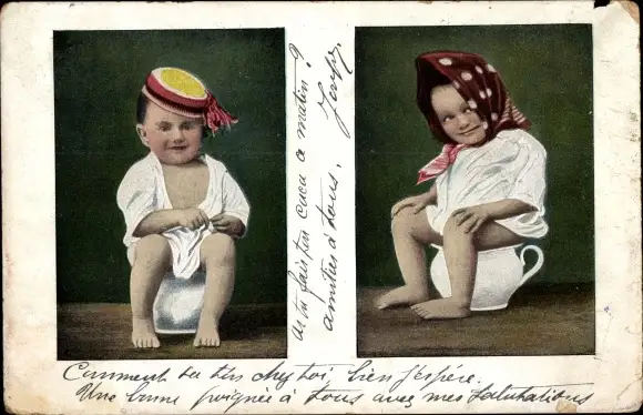 Ak Kinder auf dem Töpfchen, Toilettenhumor