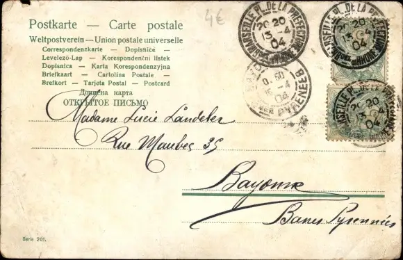 Zustand, siehe Scan, gelaufen, 1904 - ca 14 cm X 9 cm