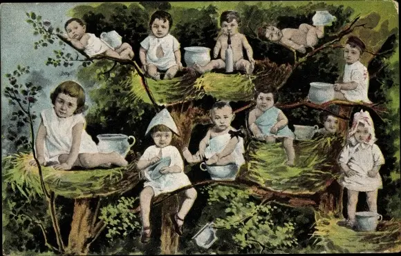 Ak Kinder auf einem Baum, Nachttöpfe
