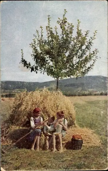 Ak Kinder bei einer Pause von der Feldarbeit