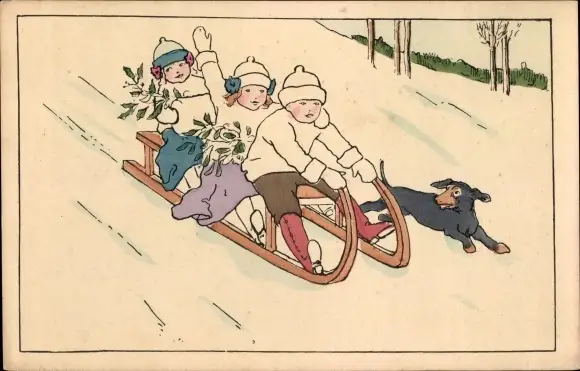 Ak Kinder fahren Schlitten, Hund