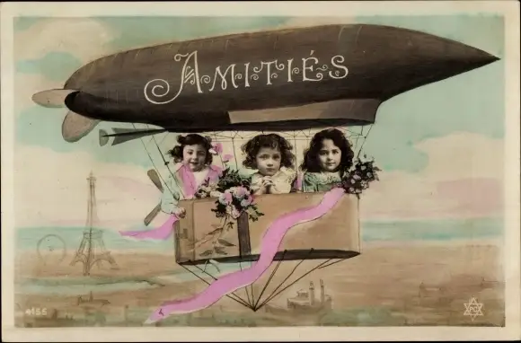 Ak Kinder in einem lenkbarem Zeppelin, Amities, Fotomontage