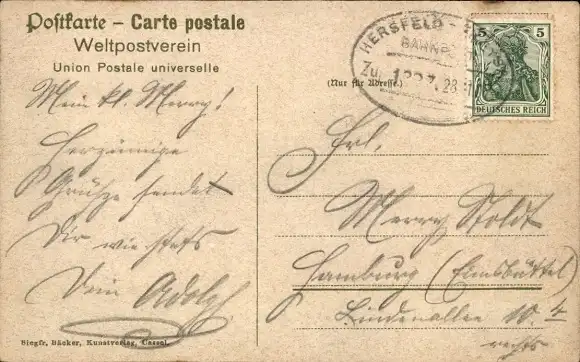 Zustand siehe Scan, 1908, gelaufen - ca 14 cm X 9 cm