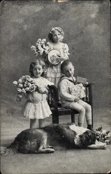 Ak Kinder mit Blumen und Geschenken, Bernhardiner